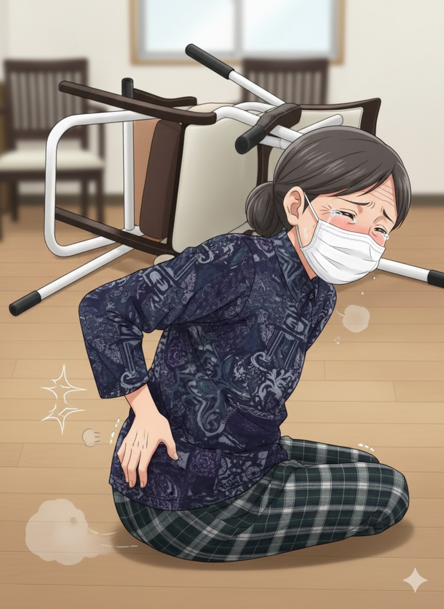 とっさの時に体勢を立て直す能力が衰えているため、転倒を防げない。