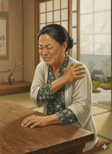 • 血液循環の悪化:肩まわりの血流が滞り、組織が酸欠状態になる。
