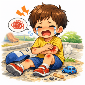 • 子供の腕を急に引っ張った直後に痛がって泣き出す