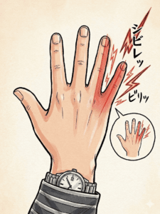 • 小指と薬指の半分(小指側)にジンジンとしたしびれがある